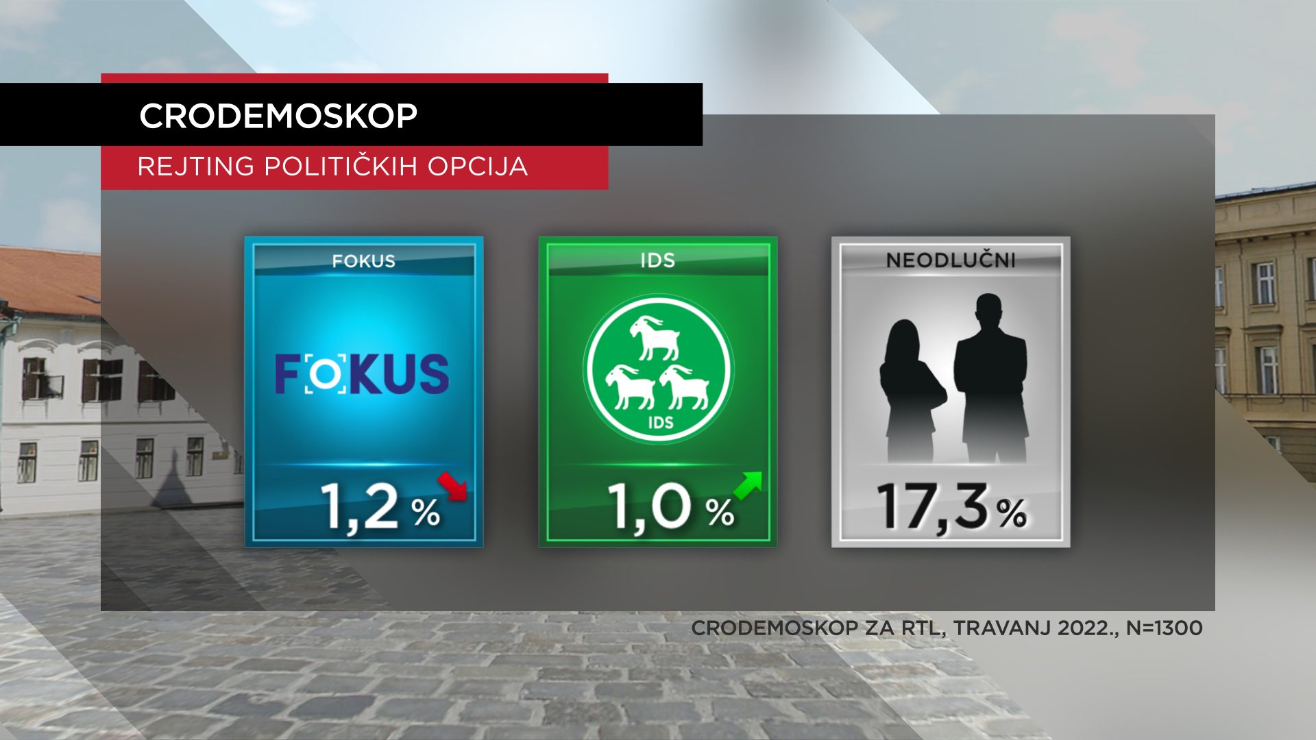 Slijede FOKUS (1,2 posto u travnju, 1,3 posto u ožujku), pa IDS (1 posto u travnju, koliko je imao i u ožujku), sve ostale političke stranke su ispod jedan posto, a prostor za pridobivanje birača raste: Neodlučnih u našoj zemlji je više od 17 posto!