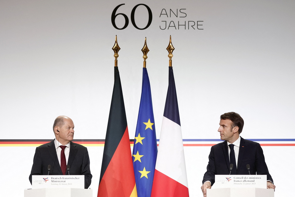U prigodi 60. obljetnice mirovnog ugovora dviju zemalja, dok na Starom kontinentu rat traje već jedanaest mjeseci, dvojici čelnika su bila puna usta francusko-njemačkog “prijateljstva” i “bratstva” koji su već šest desetljeća nezaobilazni u “europskoj izgradnji”.