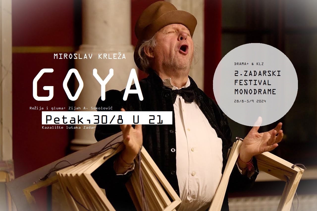 Kazalište lutaka Zadar priprema jedinstven kulturni događaj koji će se održati u petak, 30. kolovoza 2024. godine u 21 sat, kada će publika imati priliku svjedočiti scenskom uprizorenju novootkrivenog dramskog teksta Miroslava Krleže pod nazivom „Goya“. Tekst, koji je tek nedavno otkrio mladi znanstvenik Pavle Bonča u Krležinoj rukopisnoj ostavštini, procjenjuje se da je nastao 1917. godine. Ovaj nedovršeni dramolet predstavlja neprocjenjiv doprinos hrvatskoj književnosti i kazalištu te će biti izveden pod režijskom palicom i glumačkim umijećem Zijaha A. Sokolovića.