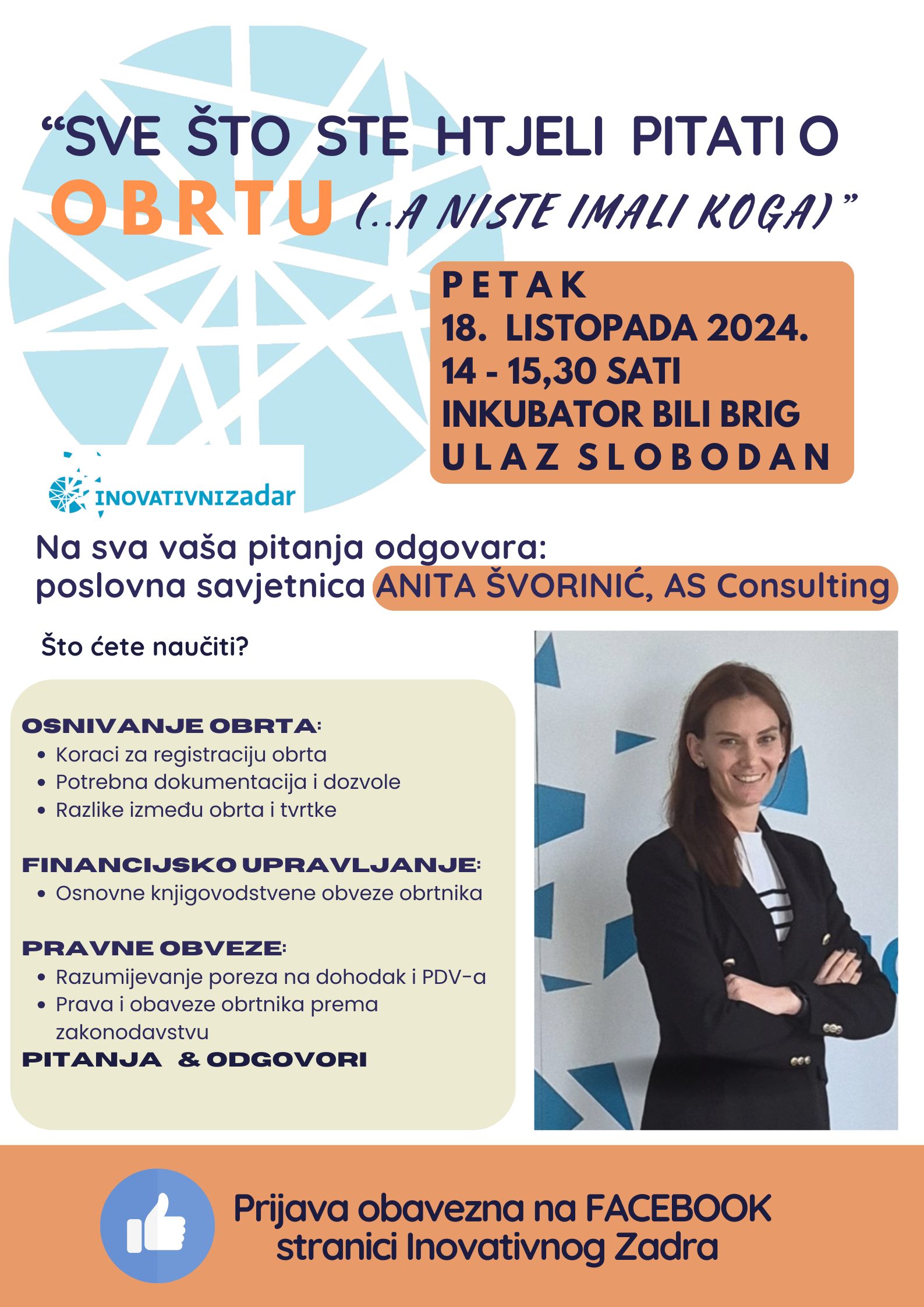 Kroz labirint obrtničkih propisa i nedoumica vodit će vas poslovna savjetnica Anita Švorinić iz tvrtke AS Consulting – i sama obrtnica i stanarka inkubatora Novi Bokanjac.