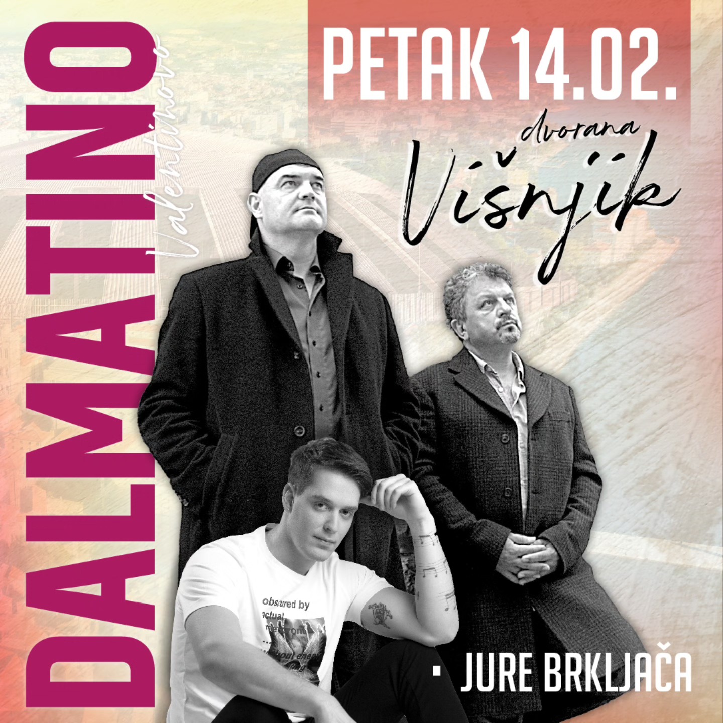Grupa Dalmatino priprema poseban koncert u Zadru povodom Dana zaljubljenih. Nakon što su obišli gotovo sve arene i dvorane u Hrvatskoj i inozemstvu, 14. veljače 2025. po prvi put stižu u dvoranu Krešimira Ćosića na Višnjiku. Koncert će započeti u 19:30, a zagrijavanje publike preuzet će zadarski DJ Angelo, dok će romantiku večeri upotpuniti nastup poznatog zadarskog pjevača Jure Brkljače, koji će nastupiti prije Dalmatina.