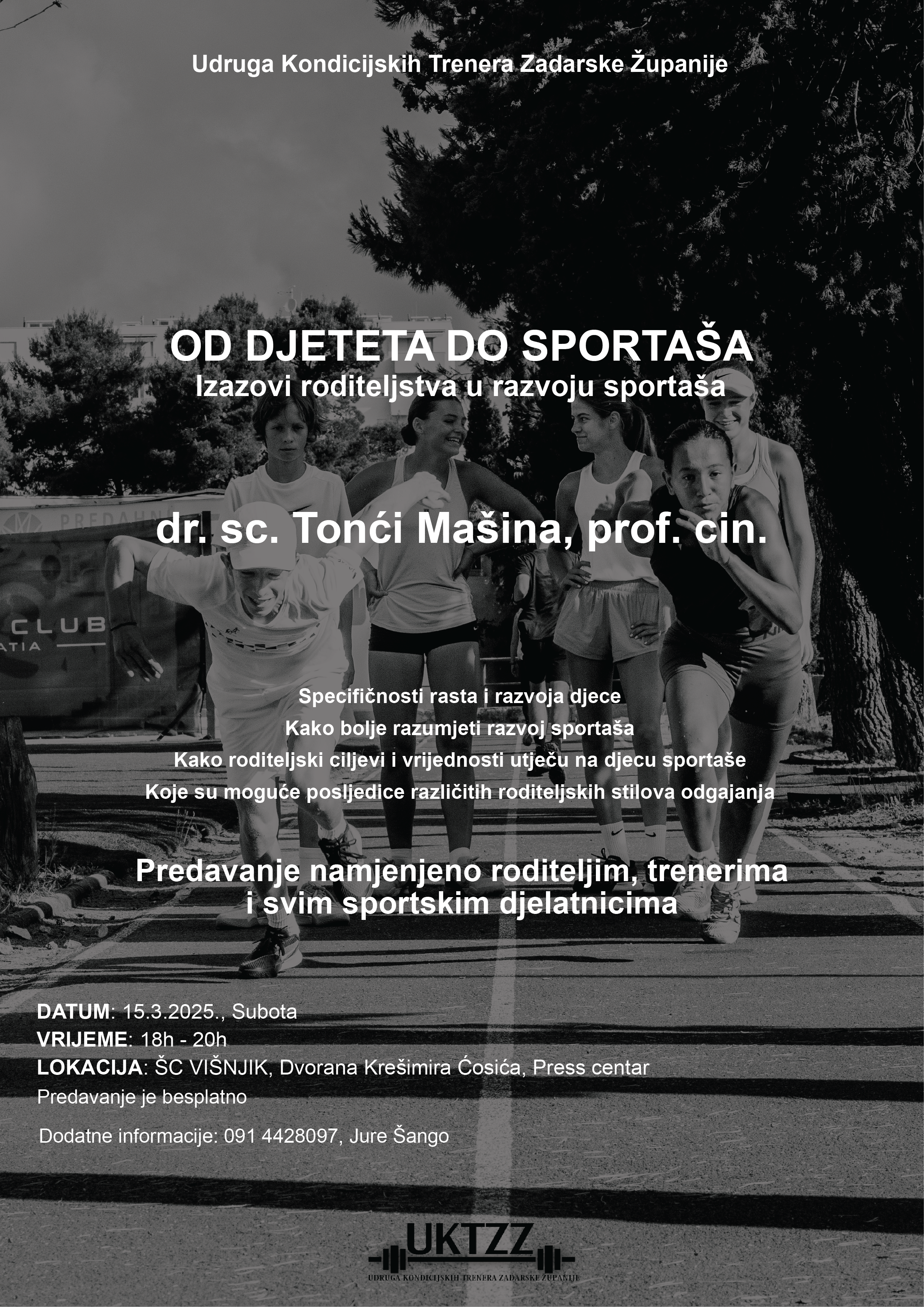 Predavanje će također obuhvatiti specifičnosti rasta i razvoja djece u sportu, kao i načine na koje treneri i roditelji mogu bolje surađivati u procesu sportskog usavršavanja.