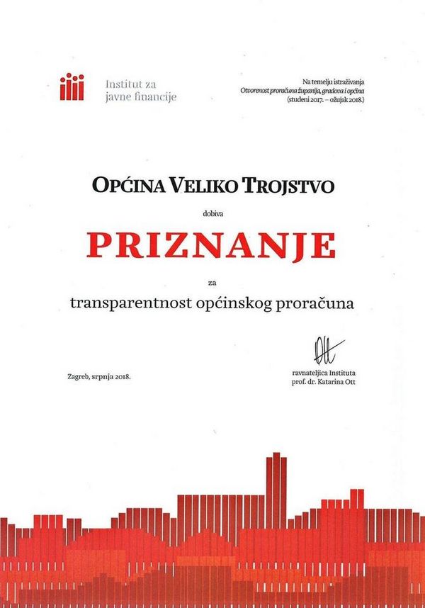 VELIKO TROJSTVO – Transparentnost je riječ koja se često spominje, a istom se može pohvaliti Općina Veliko Trojstvo koja je zaradila čistu peticu. Iako zbog epidemiološke situacije nije bilo svečanog uručivanja Priznanja, općinski načelnik Ivan Kovačić zadovoljan je ovom svojevrsnom nagradom koju je Općina dobila već četvrtu godinu zaredom. Zadovoljni su i tamošnji mještani kojima je dostupan potpun i točan uvid u svaku utrošenu općinsku kunu. No, napominje načelnik, svake godine kriteriji za ostvarenje Priznanja sve su veći.