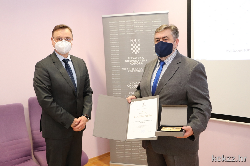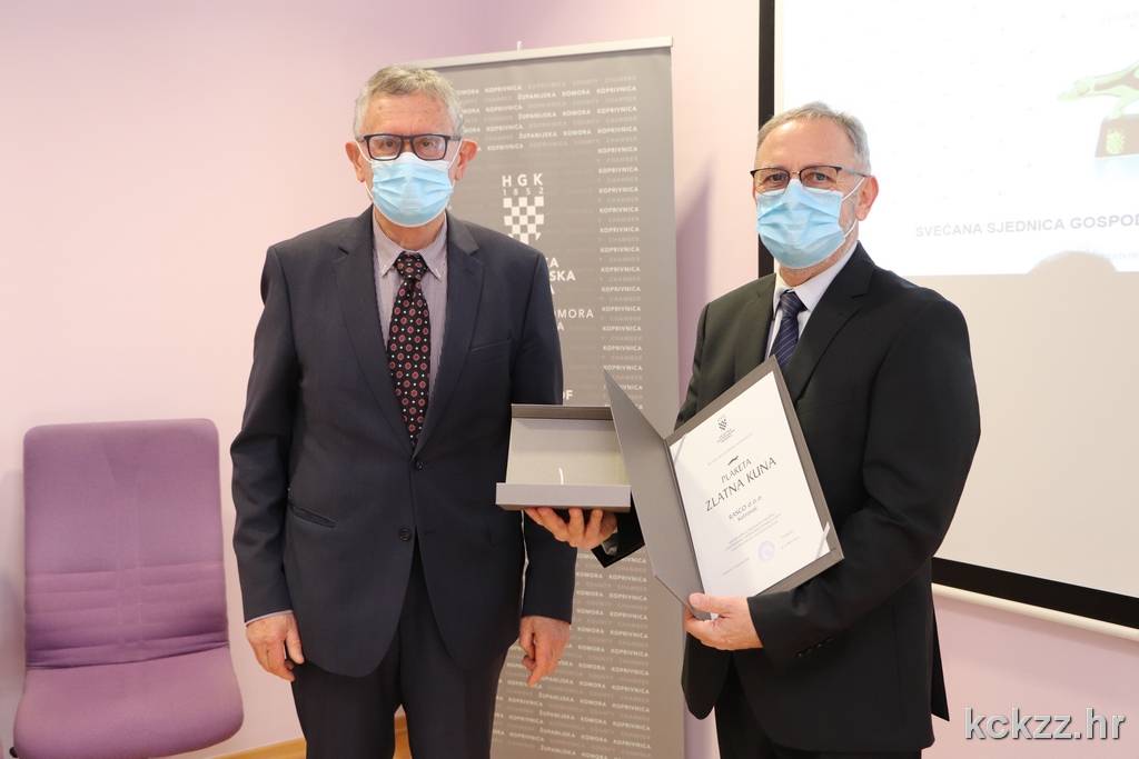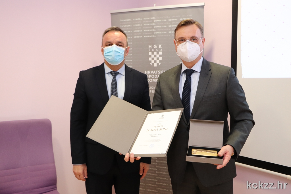 KOPRIVNICA – U sklopu svečane sjednice Gospodarskog vijeća Hrvatske gospodarske komore – Županijske komore Koprivnica, najuspješnijim tvrtkama s područja Koprivničko-križevačke županije uručena su prestižna priznanja „Zlatna kuna“ za 2019. godinu. U kategoriji malih gospodarskih subjekata nagradu je primio Cemix Croatia d.o.o., u kategoriji srednjih Rasco d.o.o., dok je u kategoriji velikih gospodarskih subjekata „Zlatna kuna“ pripala tvrtki Podravka d.d. Navedene su se tvrtke posebno istaknule u doprinosu ukupne produktivnosti, profitabilnosti i orijentacije prema inozemnom tržištu u djelatnosti prerađivačke industrije.