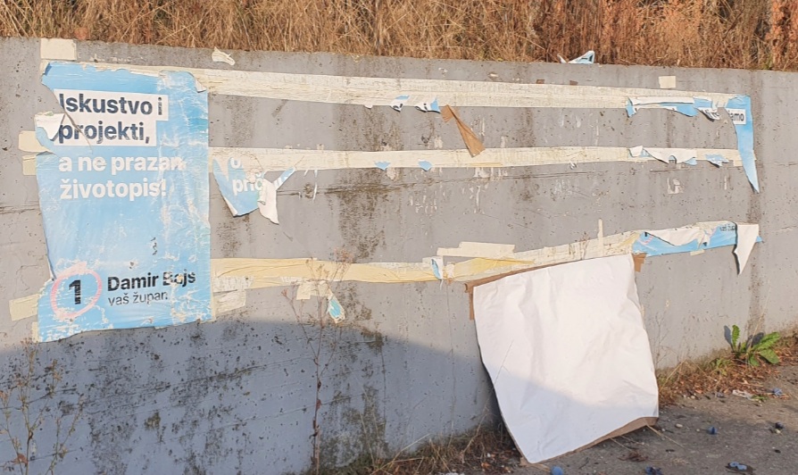 Županijski vijećnik Ivan Beljan (DHSS) medijima je poslao fotografije plakata koje su političari koristili u izbornoj kampanji ovoga proljeća, a koji do danas nisu uklonjeni s javnih površina. Fotografijama je Beljan priložio i priopćenje koje prenosimo u nastavku.