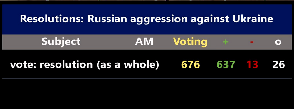 Međutim, kako se vidi iz rezultata glasovanje, osuda je s velikom većinom, ali nije jedinstvena. Kako se vidi, 13 zastupnika glasovalo je protiv, a 26 je bilo sudržano.